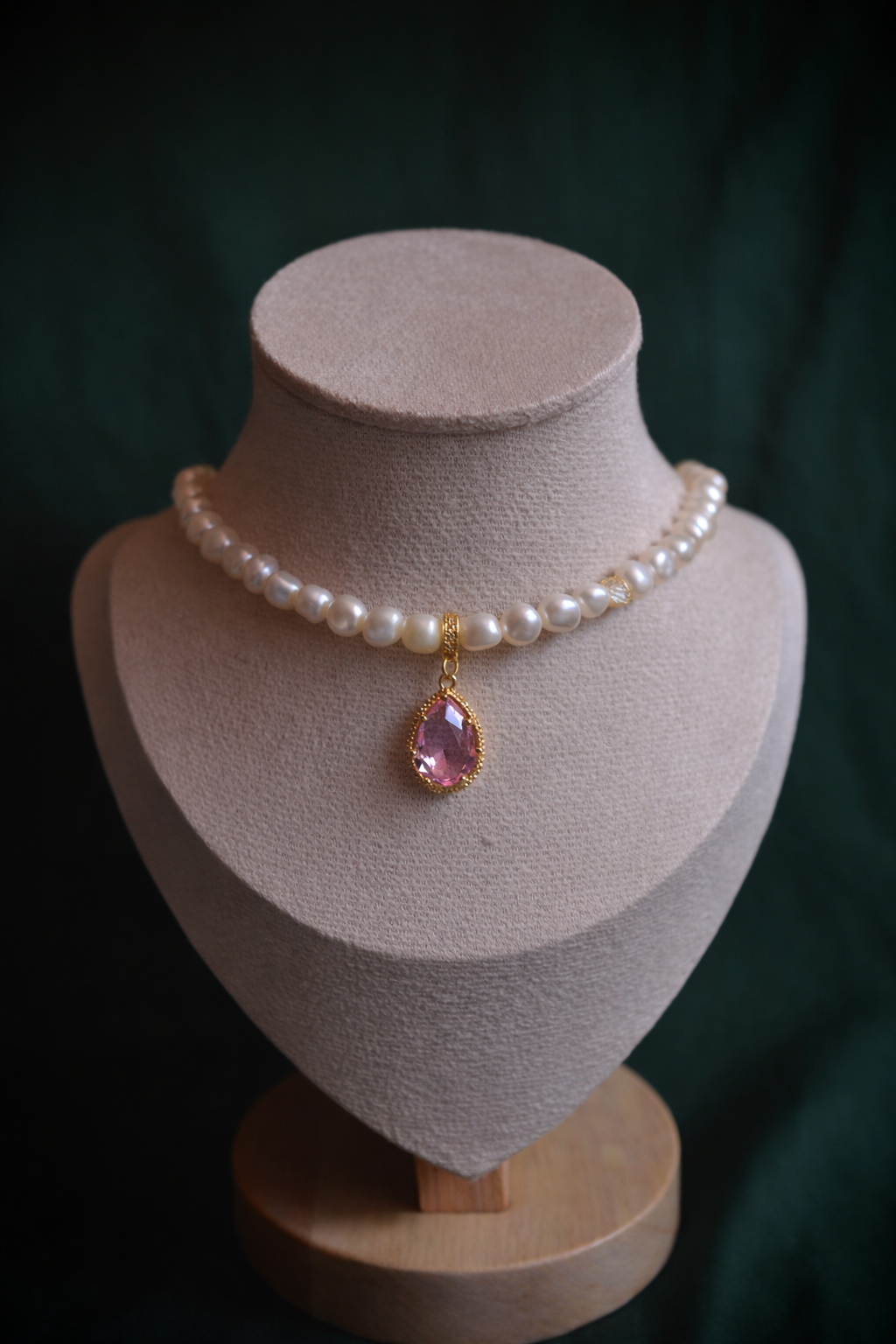Пресноводный барочный жемчуг с нежно-розовыми каплями, играющий на свету тихим и сияющим светом.