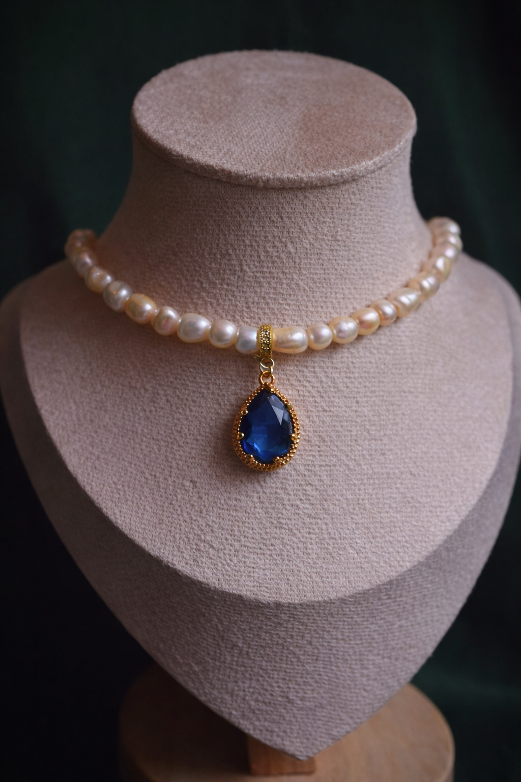 Пресноводный жемчуг, мягкий на ощупь, закрепленный на камне темно-синего цвета.